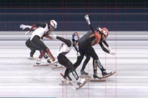 A组决赛5名选手,孙龙孤军奋战,倒数第二圈时孙龙还在第四,随后开始发力超越,最后一个弯道升至第二,冲线时只比范特沃特慢了0.028秒,只差半个冰刀的距离!