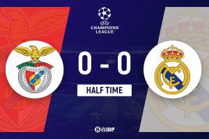 半场-皇马0-0本菲卡 姆巴佩三失良机双方合计15射7正