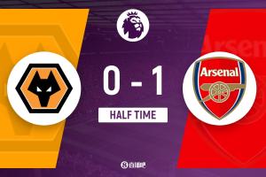 半场结束,阿森纳暂1-0狼队。