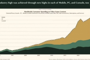 体育资讯2月20日讯 Epyllion 公司的 Matthew Ball 发布《2026 年视频游戏现状报告》,称 2025 年全球游戏内容销售额达1956 亿美元(注:现汇率约合 1.35 万亿元人民币),同比增长 5.3%,不过私人投资却暴跌 55%。