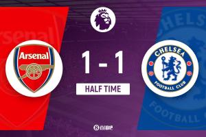 半场-阿森纳暂1-1切尔西 萨利巴赛季首球詹姆斯造因卡皮耶乌龙