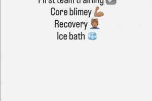 这位15岁小将写道:“一线队训练 ☑️核心力量训练 💪🏽恢复性练习 💆🏽♂️冰浴 🧊。”
