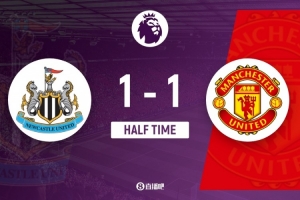 上半场补时3分钟,纽卡1-1曼联。