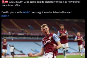 罗马诺写道:“独家消息:格拉茨风暴已就签下阿斯顿维拉前锋罗里·威尔逊达成协议。”