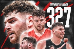 赛季至今,他抢到327个进攻篮板,创队史单赛季进攻篮板新纪录。