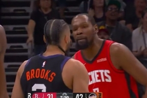 相关新闻>>>你惹他干嘛~狄龙追着KD喷垃圾话 后者直接将其晃倒跳投得分