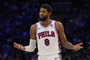 上半场,76人球星乔治表现一般,尤其是外线没投开,失误也不算少,打了16分钟,投篮5中2,三分球3中0,罚球2中2,拿到6分3篮板1助攻1抢断,有3次失误。