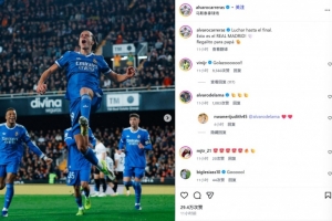他也在赛后通过社媒晒出自己的激情庆祝照,并配文:“战斗到最后一刻,这就是皇马!送给爸爸的小礼物🫡。”