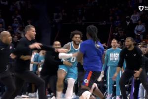 体育资讯02月10日讯 NBA常规赛,活塞vs黄蜂,杜伦、迪亚巴特、小桥、斯图尔特挥拳相向被驱逐。