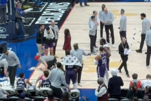 据国王记者Jason Anderson报道,第三节德罗赞怒摔水瓶,球场也被打湿了,工作球员赶紧清理。
