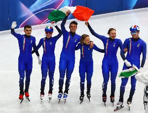 体育资讯02月10日讯 米兰冬奥会短道速滑男女混合团体接力决赛A,东道主意大利队夺得金牌,队内35岁老将方塔娜夺得个人第3枚奥运金牌,第12枚奥运奖牌!