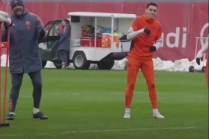 上一篇: 教练正在热身!孔帕尼小秀射门技巧!